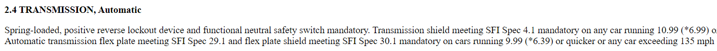 The 4t65e currently in my 2000 Monte doesn't have an electronic neutral safety switch on the outside of the transmission either. Also, I'm not sure if this information is up to date or credible, but heres a screenshot of the NHRA regulation I was refering to.