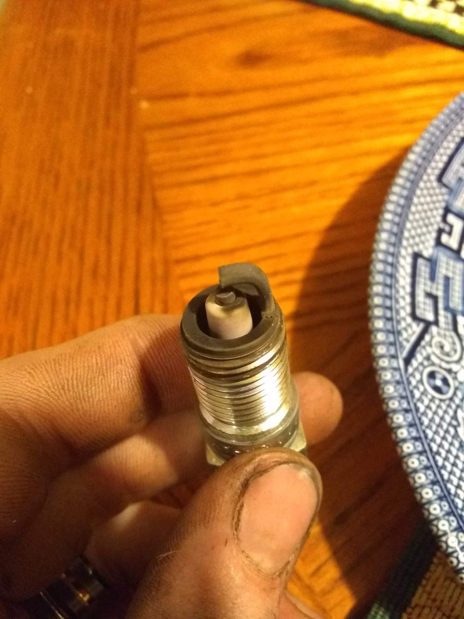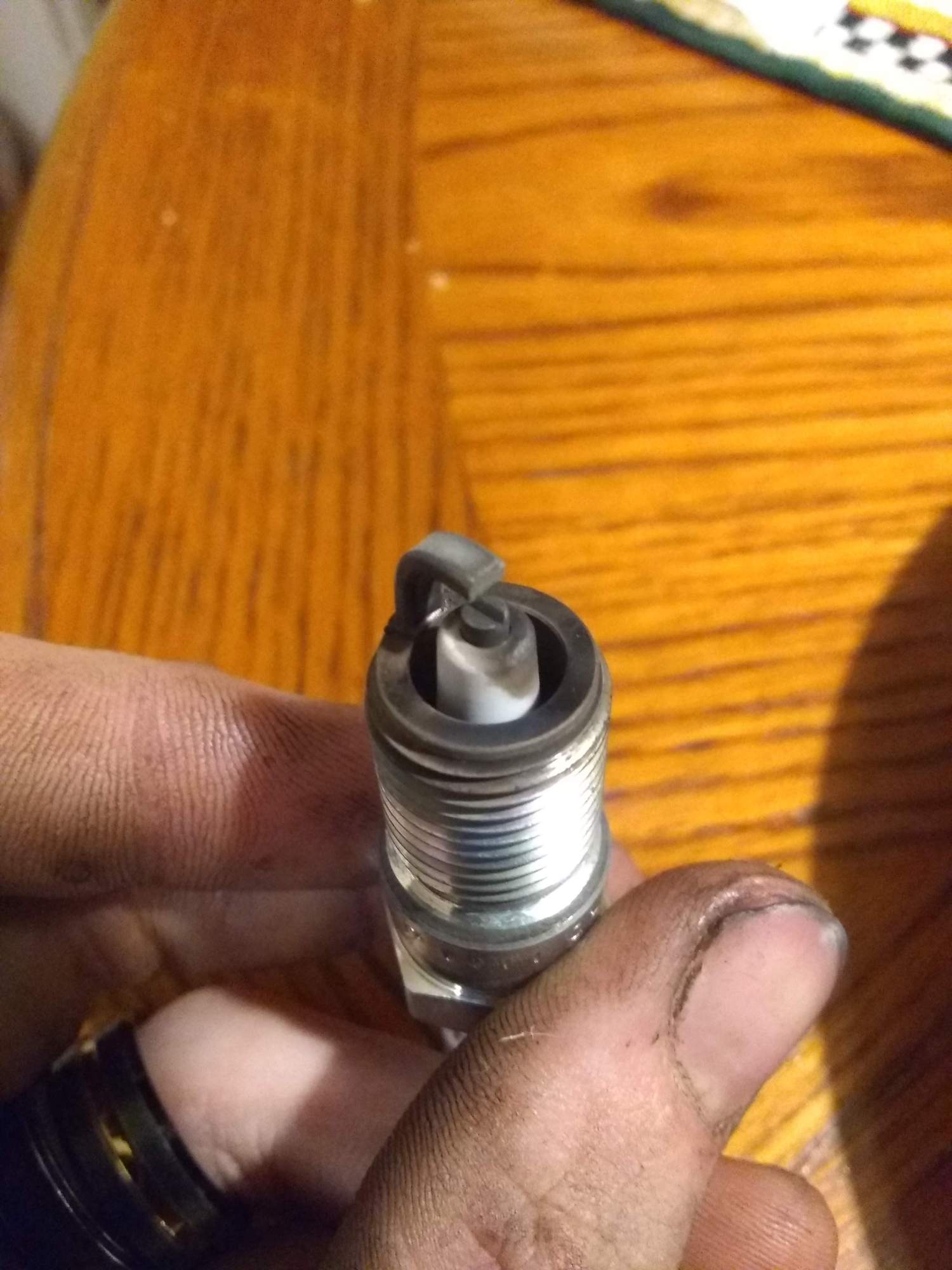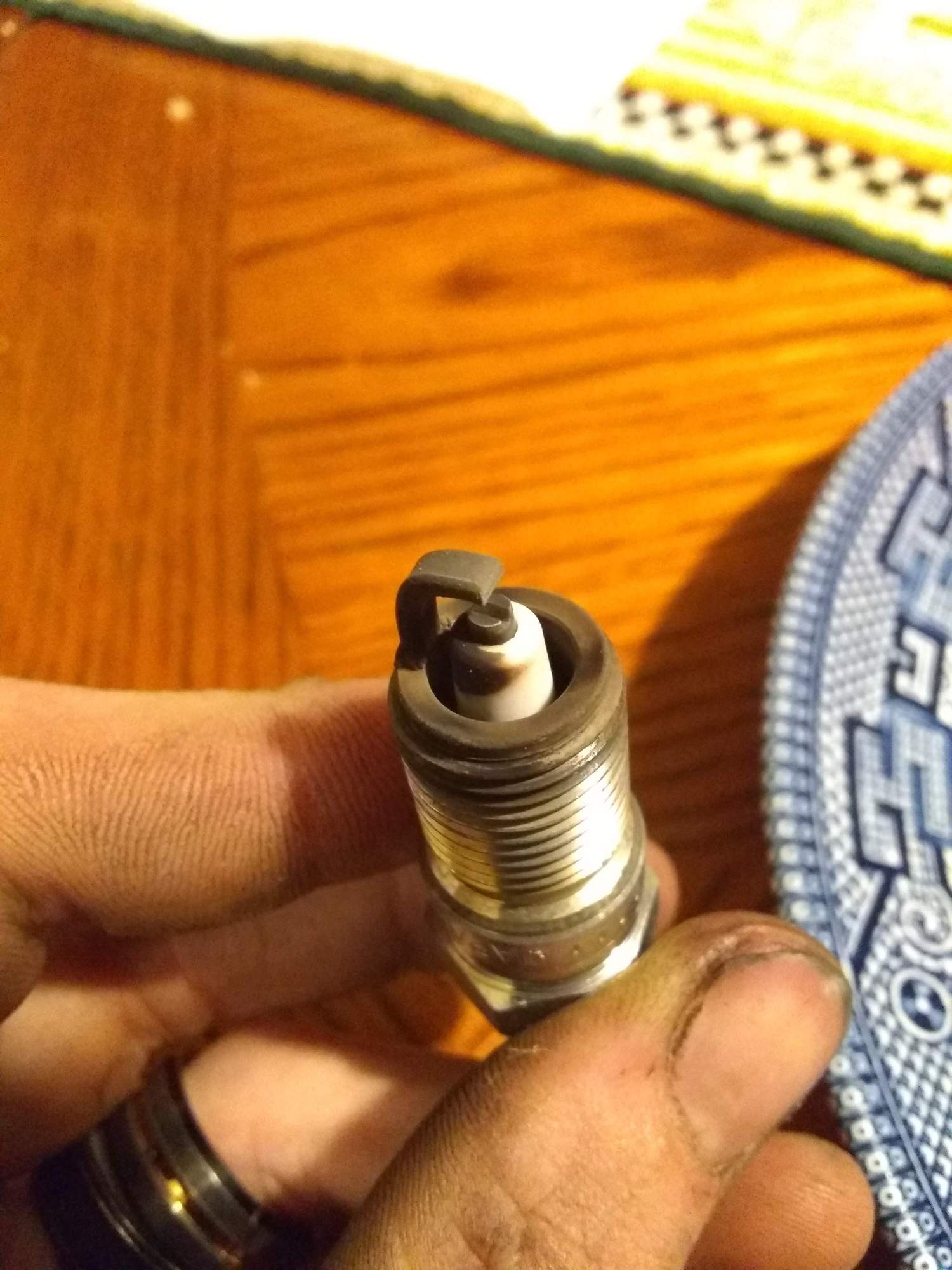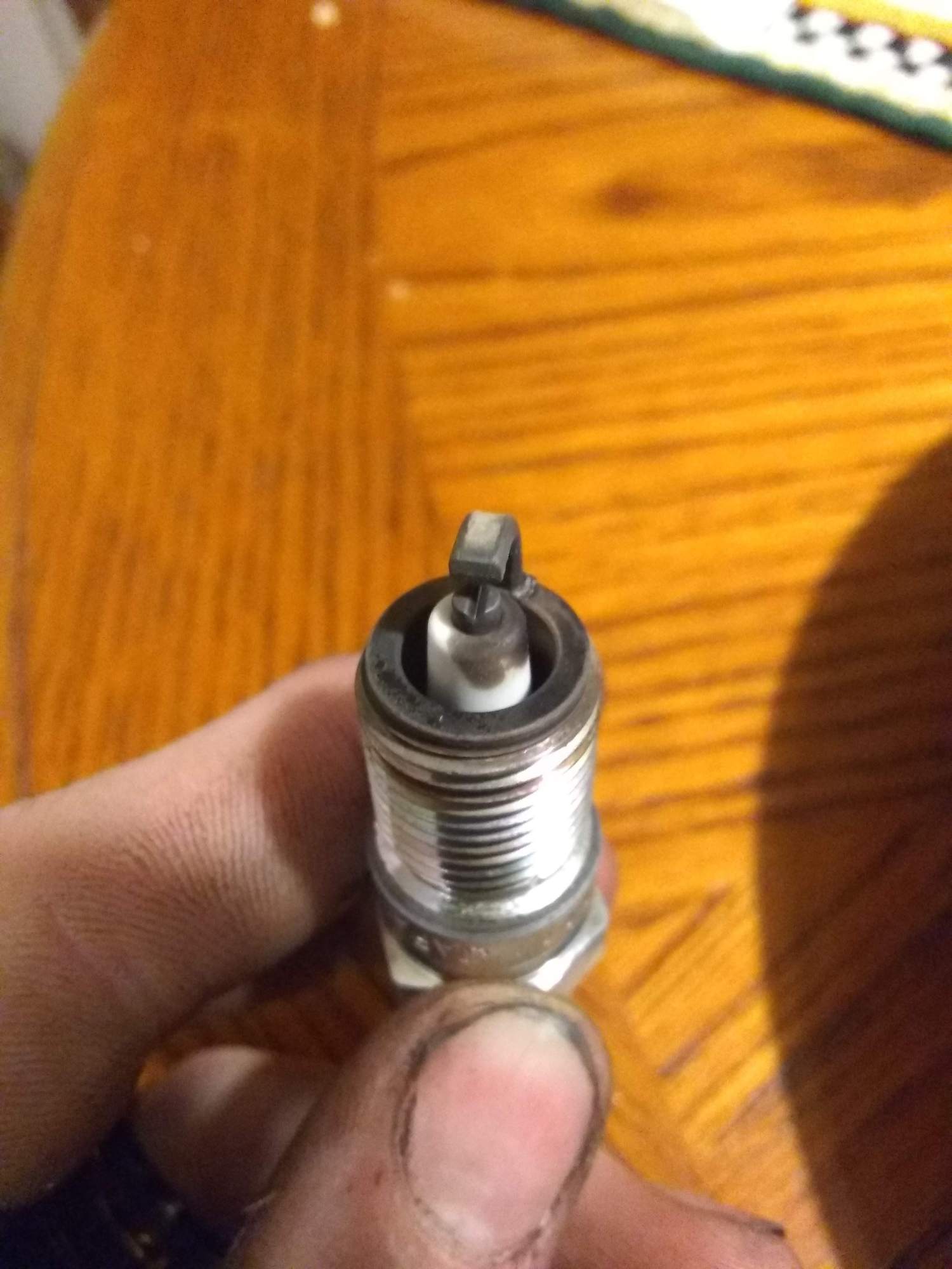 I just changed my spark plugs (NGK TR55's) and oil the other day, and took pictures of all the spark plugs. Lets see if they look off to you.