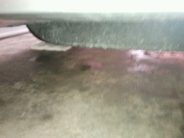 The second pic is of a few small drips that are under the front passenger side and the third pic is of a puddle thats below the front drivers side. I couldnt get a pic of it really but seems like the drips that ran thru to the back of the garage were a bit father back than these.