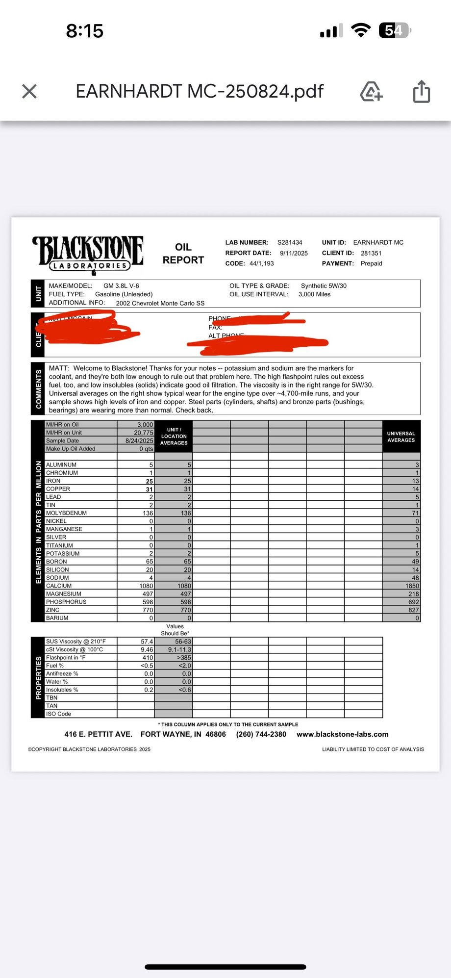 Got my engine oil results back