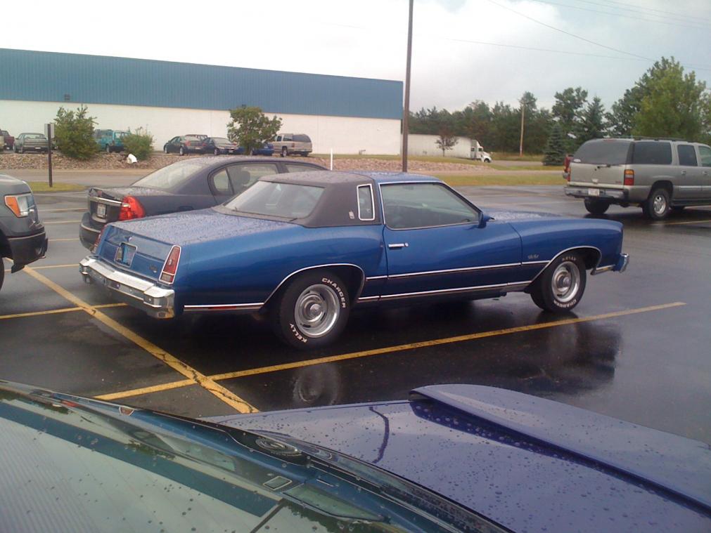That is a 1976 Monte Carlo, and definitely a good one at that! If it had been a '74, it would've only had 2 round headlights, not the stacked rectangular ones, which were on '76 and '77 MCs.