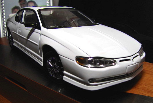With mine, I never did find a 2002 SS... What I did was purchase a 2000 SS w/ sunroof & a 2003 SS and changed out the chasis in order to get my 2002 rims to match on the 2000 SS and I also took the 2003 (Yellow Spoiler) and trans-planted it onto where the 2000 Surf Board spoiler was and created a replica of my car... Also, I changed out the engine cover from the 2000 (which was black) to the 2003 (which was grey like my 2002)... All together I purchased 2 Sun Star Diecast models (1/18 scale) in order to create 1 true 2002 White SS "Limited Edition"... Does life immitate art, or does art immitate life, who knows, but it did work out so far... Now I'm looking for scoops that I can adapt to it and thus have a truer representation of my Monte... As always it's a process just like the real thing when the modding bug bites...