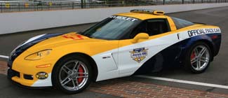 Nor does the car require drivetrain modifications to satisfy its role in front of the racing pack. With a dry-sump lubrication system, the Z06's engine is equipped to handle the highest cornering forces when traveling around Indianapolis Motor Speedway's 12-degree banked turns. In the car's official capacity, it is outfitted with a variety of safety equipment and highly-visible strobe lights - but is still mechanically identical to those available at Chevrolet dealerships.