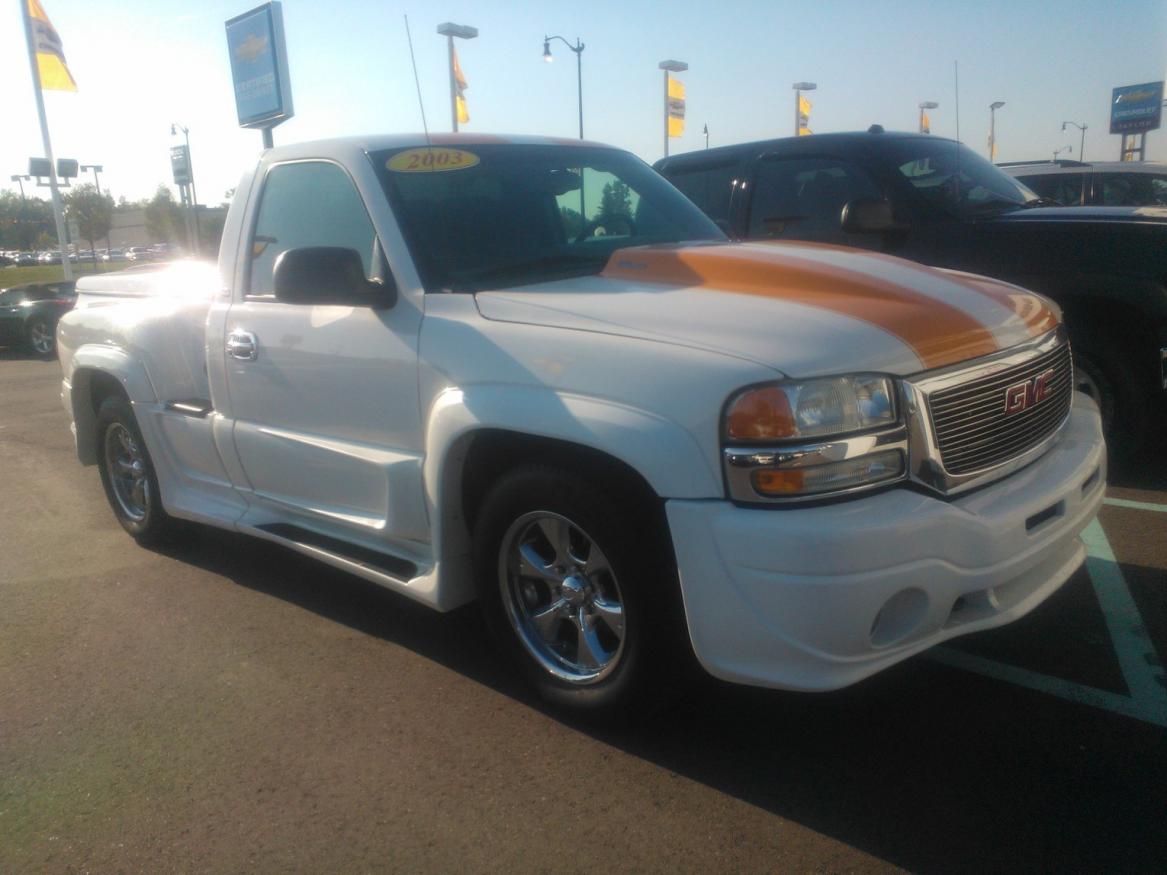 High flow Cat ... Catback duals (magnaflow) Shift kit... 18inch wheels, Michelin somethn or another tires.. I will say its very crisp and only has 37,000 original miles. 2003 GMC Sierra SLT Standard Cab... Its originally from Tennessee. The Body kit was done at Southern Comfort Conversions. It went straight from the Factory to Southern Comfort. Being an SLT it loaded with all the bells and Whistles available back then.