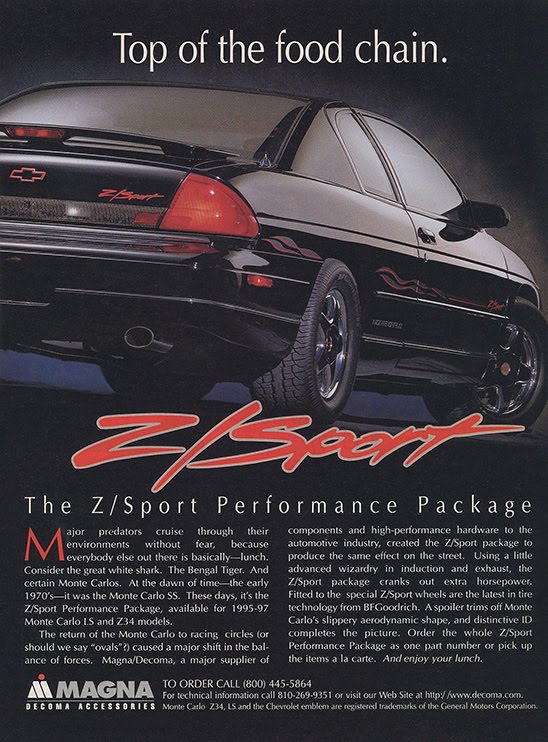 Anyway, I imagine only a handful of Decoma's Z/Sport Z34s ever ended up on the streets. There was hardly anything to them that a savvy car enthusiast couldn't also find and buy in the aftermarket. I will say, at least, that all Z34s should have had a decent spoiler like that (or like the Brickyard one) on the trunk to begin with.