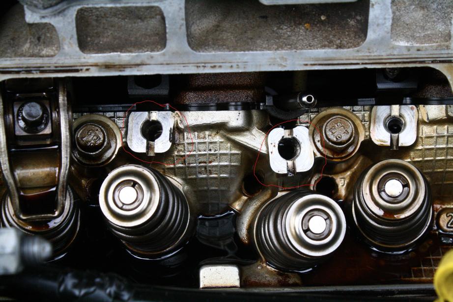 Well, the car is fixed... finally. My Dad came out today and re-drilled the holes and installed loc-tited helicoils. He even staked them at the top, so they should stay in this time. I put new plugs in it and it is purring like a kitten.