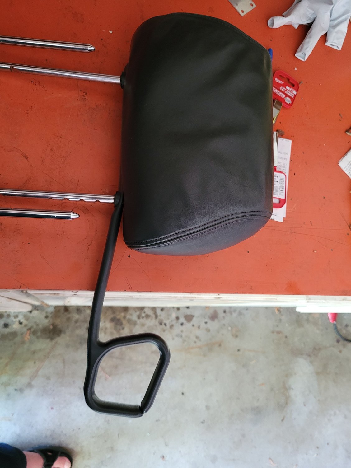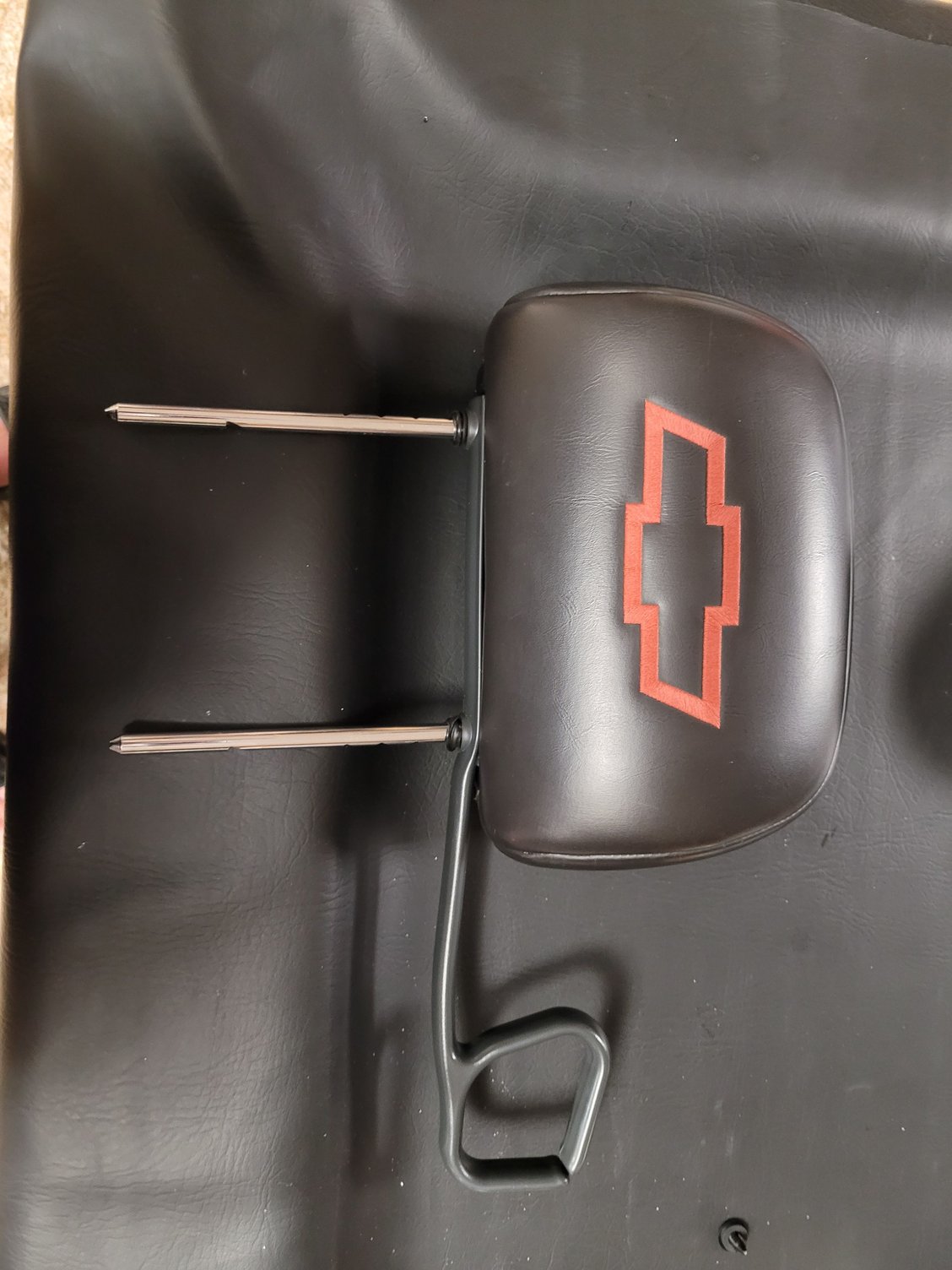 So I got to thinking what if I do a conversion on these to my car? The width of the bars are about 1 and a quarter inches wider. So I opened up an old cloth headrest to see how it worked and then I removed the loop bar and then went for the Red bowtie headrest and removed the bar from it.
