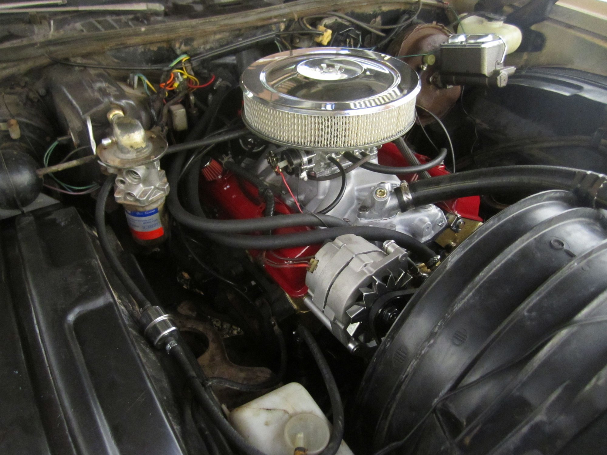 Also, I recommend you upgrade your alternator and charging wire. The 1976 Monte Carlo came from the factory with a 10SI alternator. Those alternators maxed out a 63 amps. If its a cold rainy night, running the lights, heater/defroster, windshield and radio draws lots of current which makes the alternator work really hard. The alternator creates heat as it generates current; the more current it generates, the hotter it gets. Efficient cooling is essential to helping the alternator last longer. Starting in about 1983, GM came out with the 12SI alternator which maxes out at 95 amps. It has a better design for better cooling and more amperage at low RPMs. The best thing about it is it's a drop-in upgrade, no need to change terminals or brackets, just bolt on, plug and play. As for the charging wire, from the factory, it's 10ga. That's barely sufficient for what's expected of it. Once again, using Ohm's law, V=IR which is volts = current × resistance, heat is generated as current flows through the charging wire (a conductor). The easiest way to manage this is to reduce resistance and to do that, increase the size if the conductor. So, upgrading to an 8ga charging wire helps reduce resistance to current flow thus reducing heat and making the alternator not work so hard. In short, the charging system will be more robust and reliable.