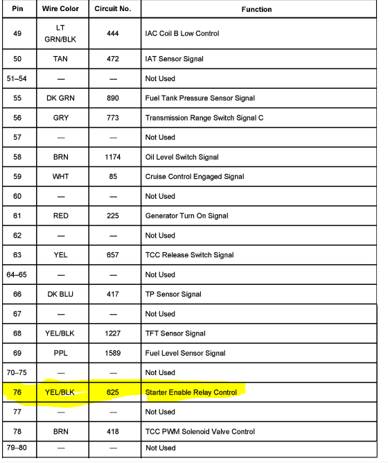 I feel our next step is to either ohm the wire from the crank relay enable output from the PCM which is C2 Pin 76 to the crank Relay control ground Pin to see if we have a broken wire. I would also like for you to try and back probe the pin 76 of C2 connector of the PCM. (I assume you know this but the PCM is located inside the air filter box) with your test light to battery voltage and try to start the car ( leave the crank relay plugged in). I wan to see if the PCM is outputting the ground that drives the crank relay to turn on. If the test light lights up, then that tells me there is a broken wire between the PCM to the crank relay. Note there is a connector between C112 that is in between the PCM and Crank relay, I attached a location and pinout of that as well.