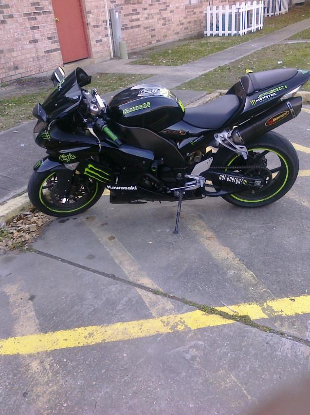 I finally was able to clean the baby up a lil and take some pics...first is my 04 monte ss supercharged..the intimidator..very sexy..and a couple of pics of my first baby..on two wheels...06 zx10 hope ya'll enjoy..