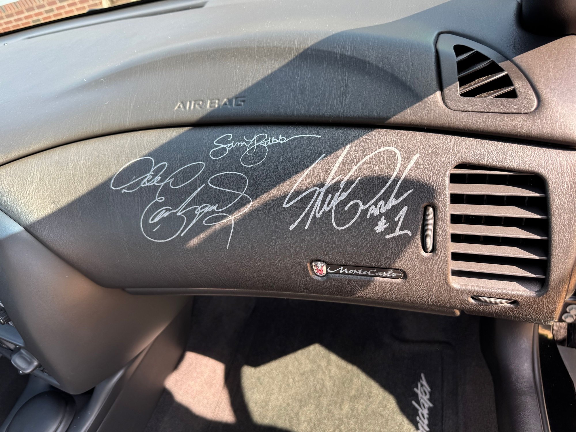 Hello everyone, I was a member of this forum under AFAN4_29 about 20 years ago but lost my login info. Back in 2001 I owned a Silver LS and in 2007 I owned a Red with black rally stripe SS. I recently saw a 2002 SS Dale Earnhardt edition for sale with 17k miles on it. I decided to test drive it and fell in love with the car all over again. I bought it and got a good deal on it. I changed all filters and fluids and including flushed the power steering and coolant and brake fluid. I had a few hard starts and found out the fuel pressure regulator diaphragm was leaking fuel into the vacuum line so I replaced that as well, no more hard starts. I put new tires on it since it had the original tires that were 23 years old. Ugh Here is some pictures of it. The previous owner must have bought a dash panel from another Monte Carlo cause I found pictures of Earnhardt and Park signing the dash that were in the glove box. I am so happy to be able to own a Monte Carlo again.