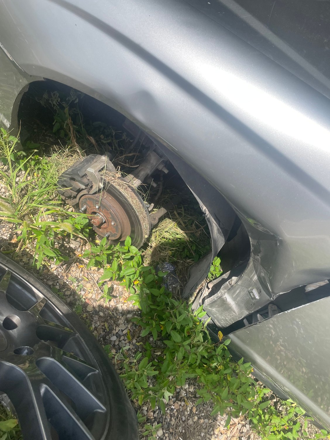 The guy I sold the car too drive it for. Over a mile after the wheel fell off, ruined the rotor I just put on, broke the bumper more, broke the transmission pan, blew a tire out, and cracked the wheel, the car is pretty much done for gonna junk it next week