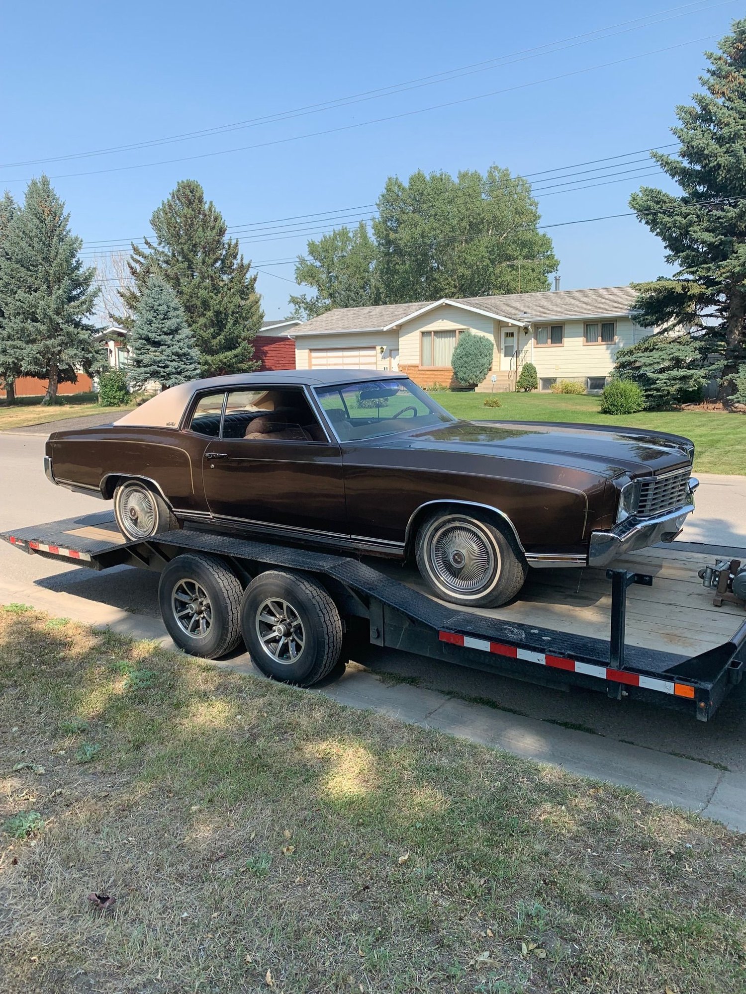 Yes im new to the forum. I have acquired a 1972 Monte. It was my aunts car. She has had the car for the longest time. It has set in a shed for more than 20 years. In her words “closer to 30” all and all it isn’t in two bad of shape. It needs some major love. I was able to get it running. All the lifters were collapsed so it sounded like a bag of sockets. It is slowly getting better every time i fire it up. It isn’t very highly optioned from what i can see. No a/c now power locks or windows. I’ll try attaching some photos of us pulling her from the shed she slept in. My brothers were visiting her and said if I wanted the car id better go get it. They said trees that are around the shed are dead or dying and one of them is gonna come down and crouch the car. A few questions I have are