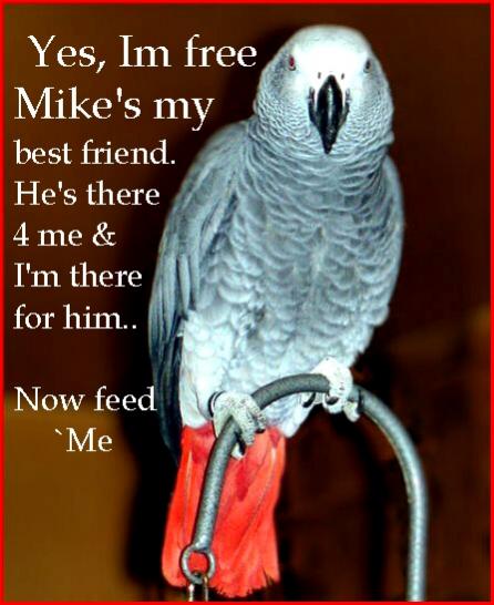 Thanks `Mike, it's great to read that your bird is `free 4-Sure... I just don't like to see animals caged