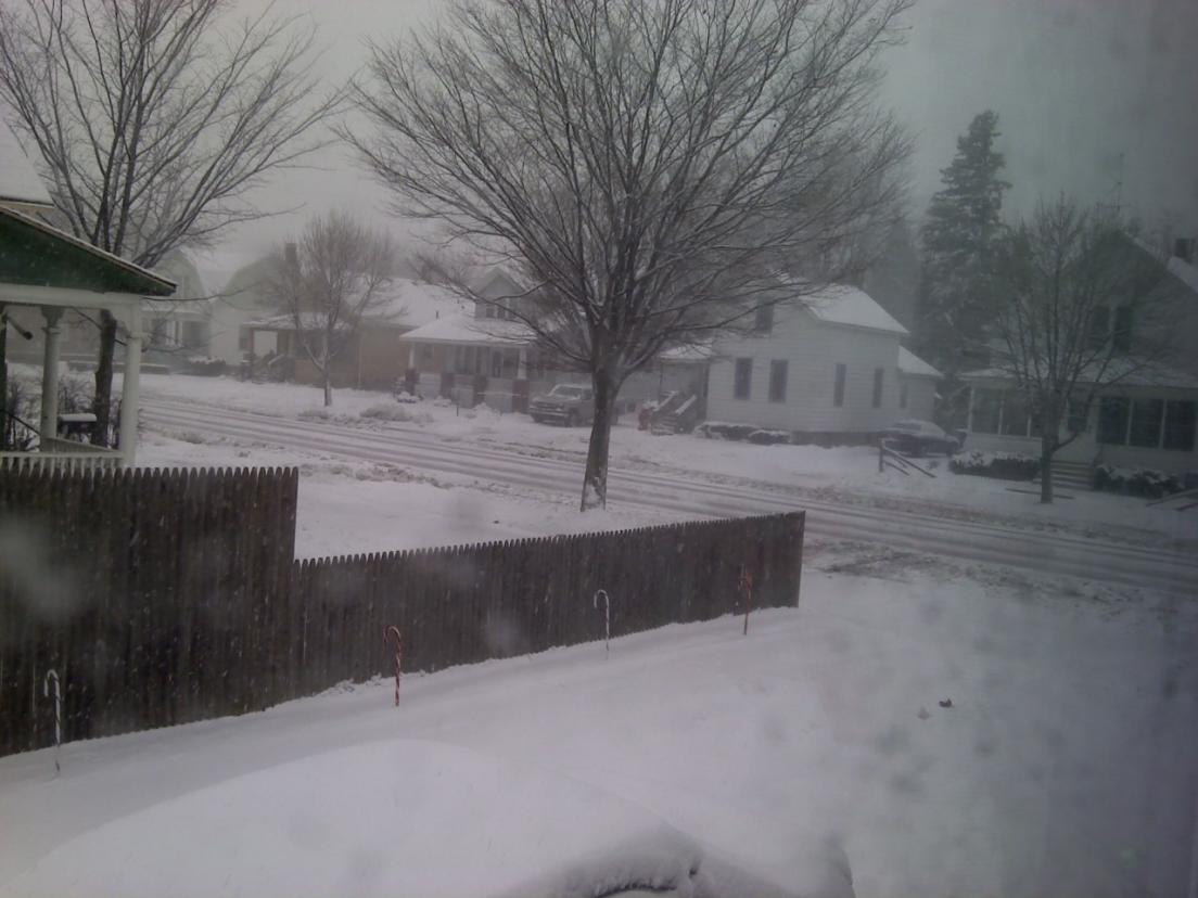 We woke up to heavy snowfall that started to stick, later stopped.