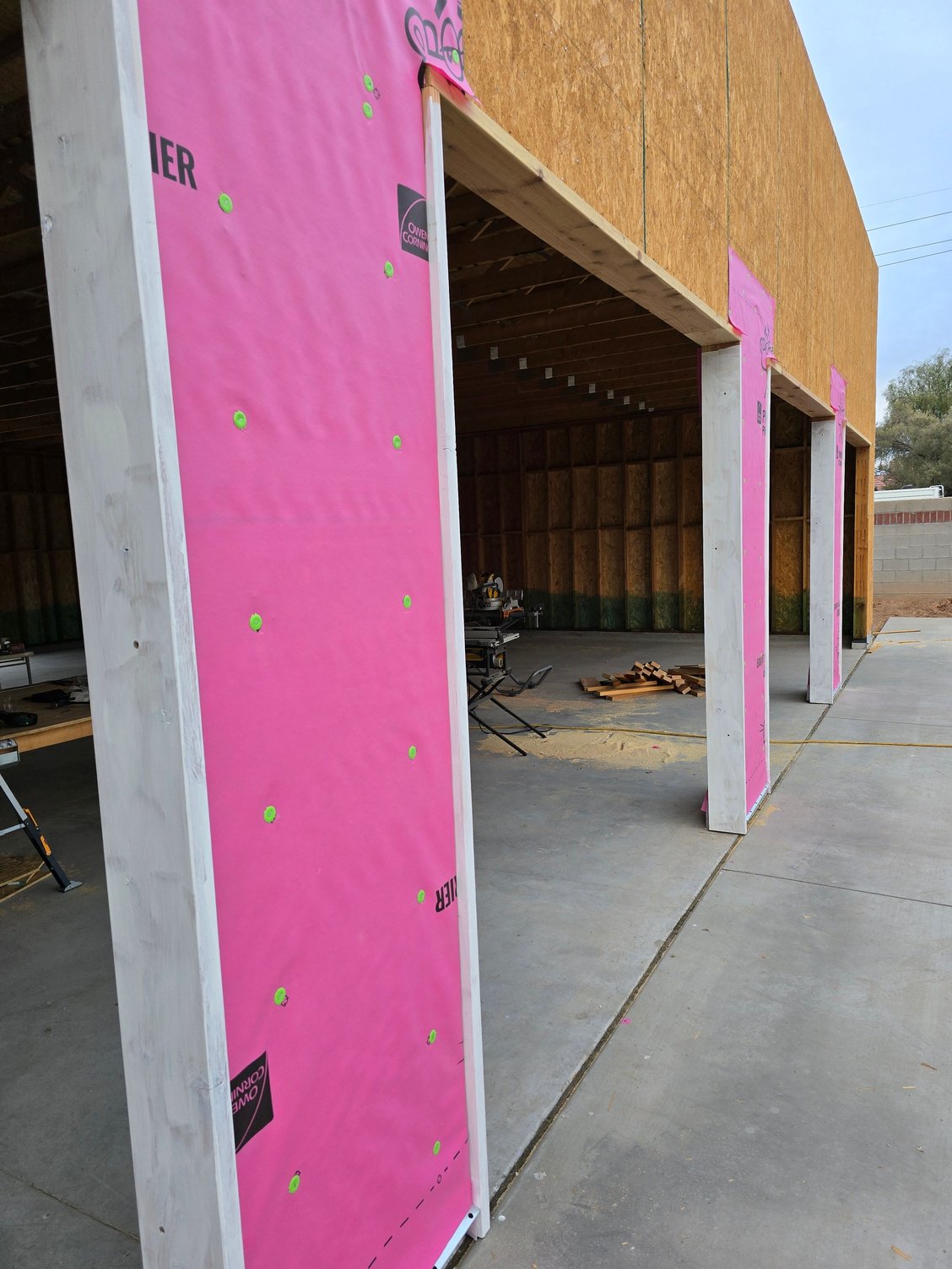 Looks like Ive got to have an inspector come back out to talk about what is required for the next step so I dont go too far / too little. From the city's permit guide, it looks like I've got 3 steps left: Framing, Lath, Final. I asked the inspector last time what all I needed for the Framing step and he said house wrap and roof, doors aren't needed until final.