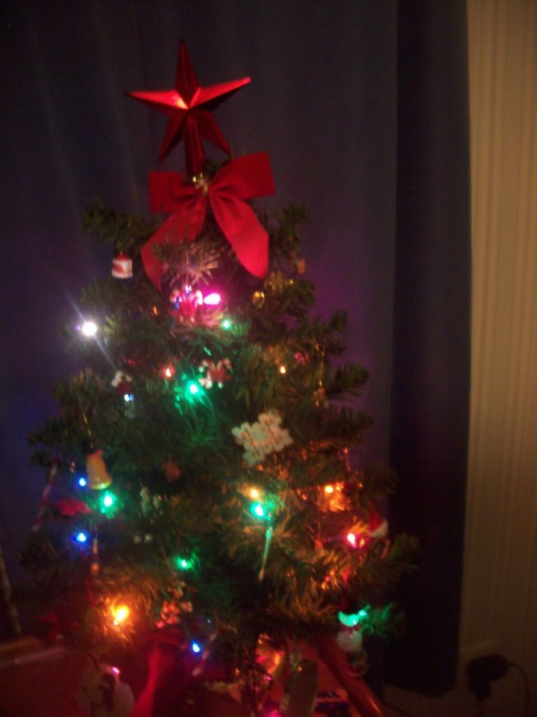 The tree, two pictures. My mom made nearly ever ornament on this tree over the years out of plastic canvas.