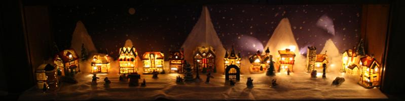 This general store was built by my Uncle Tony to hold Kleenex. I strung a 20 light strand around it and put some cars around it for fun.