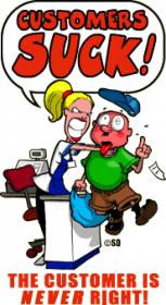 now every other word that comes out of his mouth is F-this and F-that so i kick him out of the store. there were kids around and everything, so out he went. on the way out he's swearing and yelling like a little child that didn't get his way and that he'll never buy from sears so on his way out i yell back in all seriousness "have a nice day!!!"