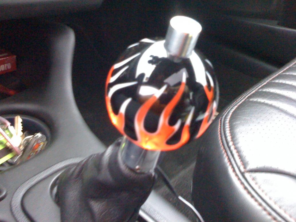 so cigarette lighter it is for now. i tried taking off the trim ring around the shifter and the boot, but i'm not sure exactly how to get the wire all they way through to come out the backside of the center console, near the lighter socket. (any suggestions?) i didn't have a heck of a lot of time to play with it though, the phone kept ringing and i had to keep running in the office. if it's nice out tomorrow i might fool around with it some more. getting that trim ring back on was a BI*CH!! i really like it though, i am probably going to go out later on and see what it looks like lit up in the dark. i had it lit up on the way home when it was dusk, and it looked rad even then. very excited!!
