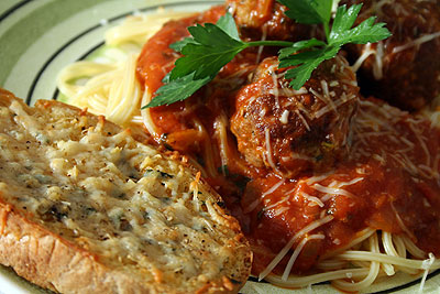 By the way, it was Spaghetti and Meatballs for dinner with garlic bread..