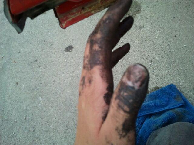 First step was to get the supplies. This is what I used: Sandpaper, roll on bedliner kit from Duplicolor (came with a cheap plastic container to pour liner in, a roller, a scuf pad and a brush), One quart of Hurculiner roll on/brush on bedliner, masking tape, some towels you're willing to ruin, and of course a cleaner and a rag of your choice to clean the surface you wish to bedliner. So my first step was to clean the surface. Step 2 I masked of the ares (as you can see in the pictures I need to even out some of the lines which will be doen tomorrow). Step 3 after masking off the areas was to sand down the area you wish to apply the liner to. The scuf pad provided with the kit didnt do much so i used some sand paper and scuffed it up nice and good. Step 4 is applying the liner, I chose to use the brush because it was such small areas and it came out nicely i thought. Be sure to spread it nicely since it does like to run and drip if applied to thickly. Step 5 is to remove your tape and see how it went. On teh can of liner it says to remove it once finished getting a coat on but i let it halfway dry so i wasnt peeling the liner off areas i wanted coverd. And of course if you're messy like me wear gloves! I didnt think of doing it and ende dup spend and hour and a half cleaning liner of a ring my fiance gave me she was not happy. Anyway heres the pics.