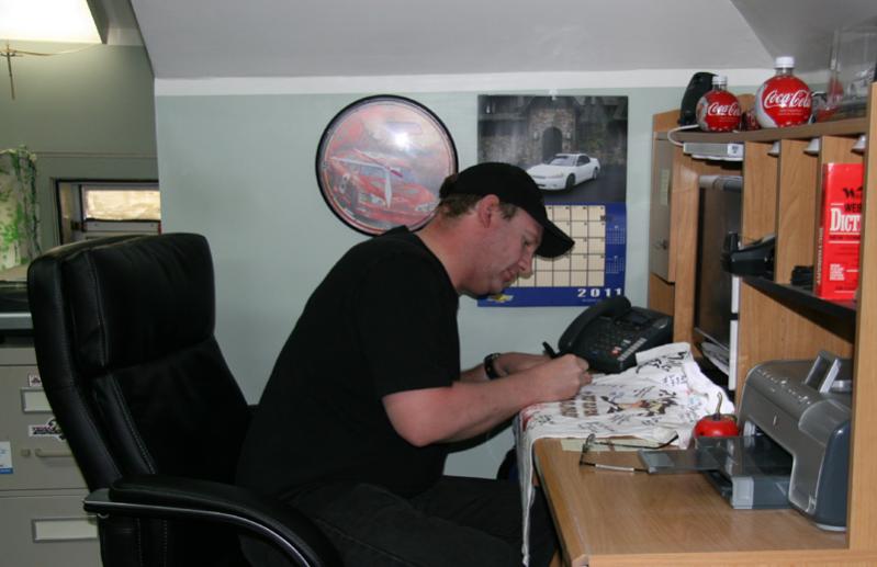 Me at my desk signing the shirt.