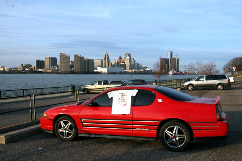 Detroit skyline. The group of three buildings on the far right is GM World Headquarters.