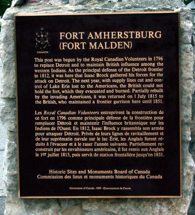 The other picture was taken at historic Fort Malden in Amherstburg, Ontario. The brass plaque pictured explains the significance of it.