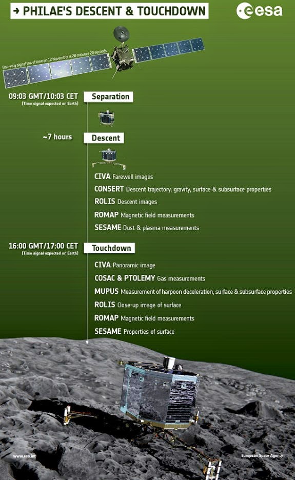 Live webcast from ESA mission control, when Europe's Rosetta spacecraft dispatches the Philae lander to make the first-ever touchdown on a comet. Official hashtag: #CometLanding