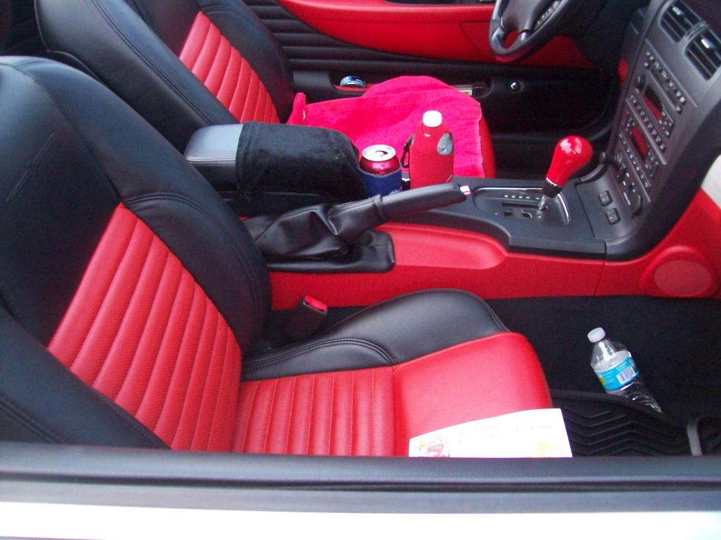 Here's a pic of what my new seats will look like. They'll be black leather with red stitching, with the name Monte Carlo stitched into the rear seat middle head rest. What do you all think? Too much red?
