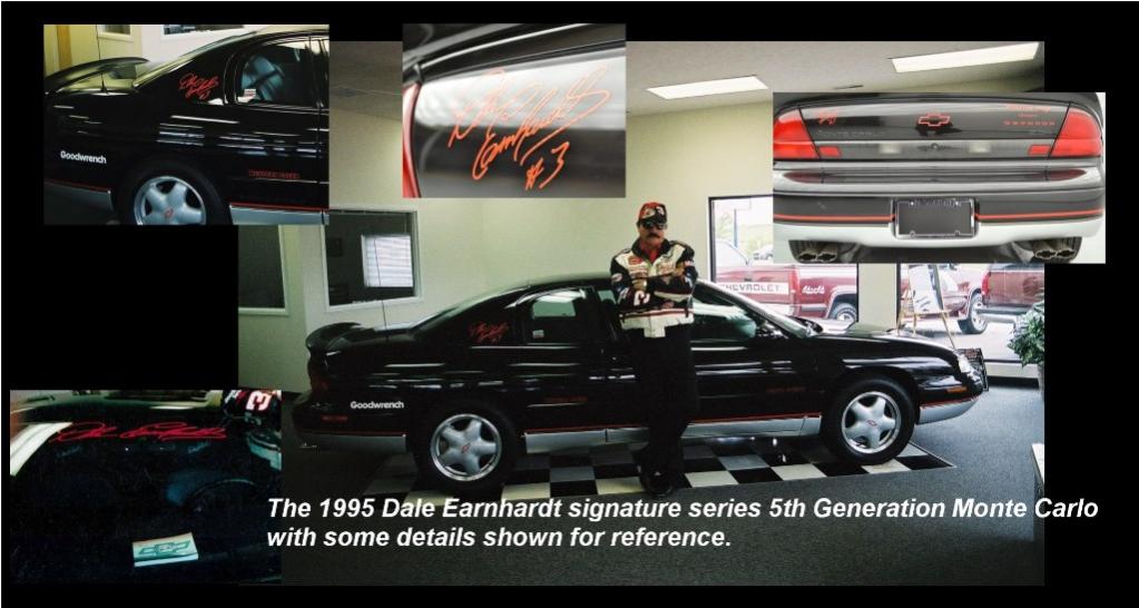 I have been searching the forum for a Reference to the Dale Earnhardt signature series Monte Carlos from the 1990's, I didn't seem to have any success. So I have created some references to this subject which might be interesting to some.