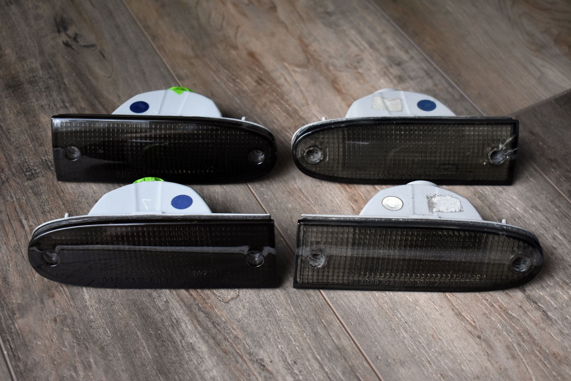 Also, the car's original backup lights (that I smoked myself back in 2011) are faded and showing their age so I wanted to have them redone, professionally this time. Initially, I thought I'd pull the originals out and have them resmoked but upon removing them found they're in pretty rough shape so I decided to look for replacements. The backup lights are still available OEM so I bought a brand new pair and just recently got them back from being smoked by a local shop. I also repainted the screw heads black (I prefer they blend in) and will be getting the new lights in the car this week.