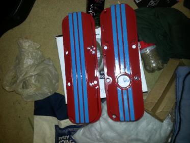 Painted valve covers. Will put them on the car in december when she gets out of the shop. Look great in my opinion!