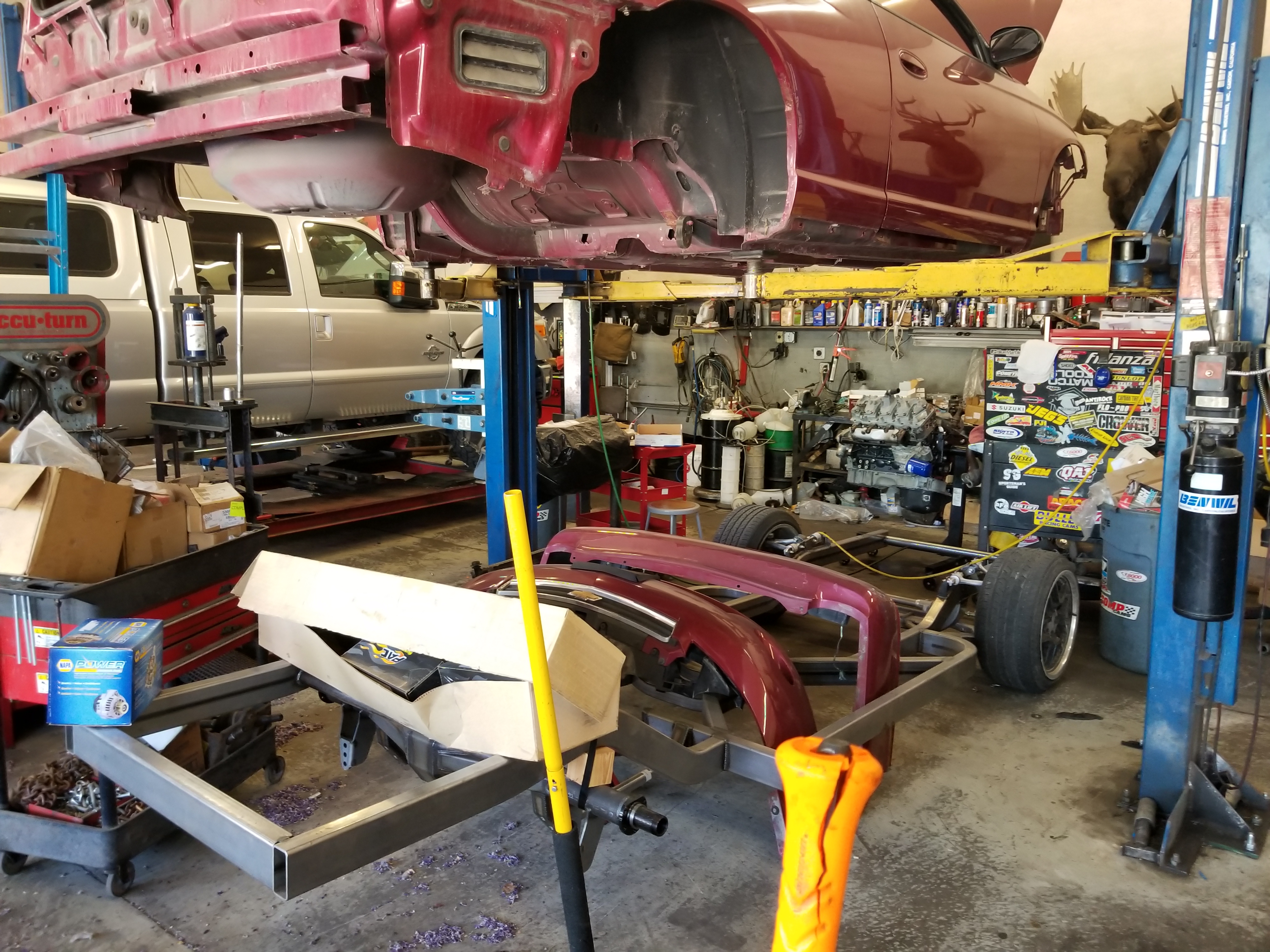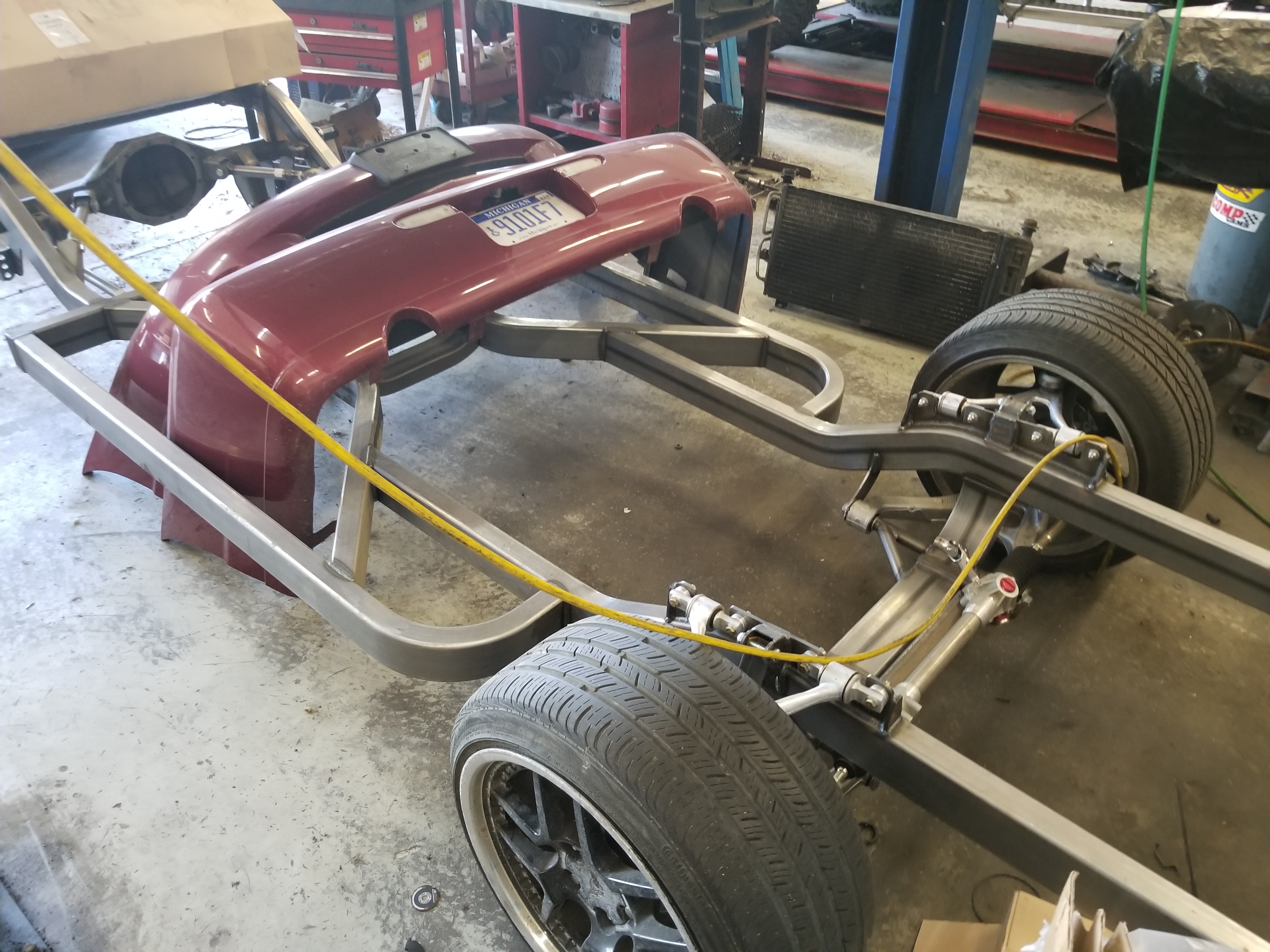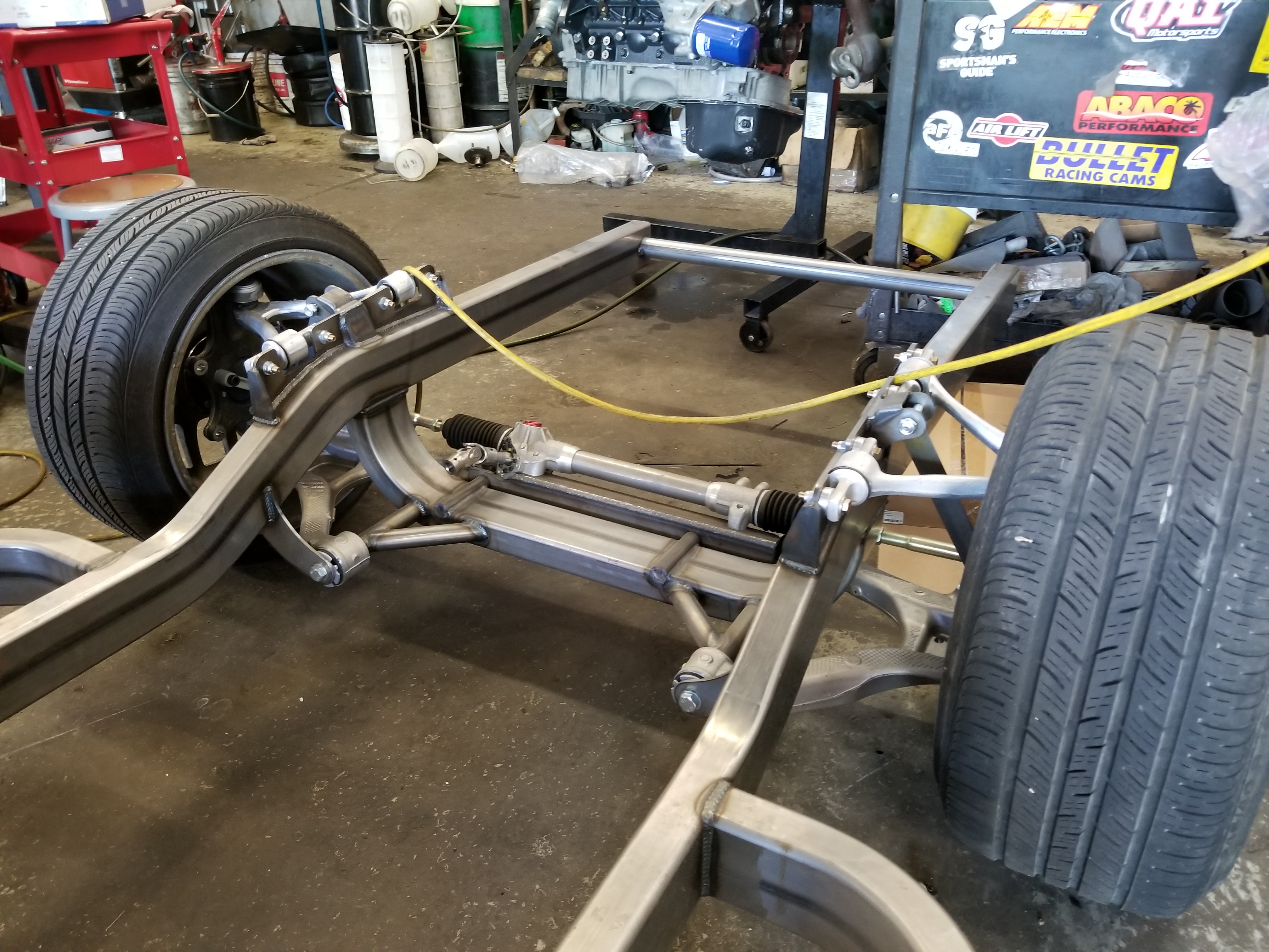 Greg: Thanks so much for taking the pictures of my build and posting them. I am sure the guys here appreciate the update - and if you don't mind please continue to take pictures as time passes and the build progresses. To answer the question of the time line - it is something that was agreed upon between the shop owners and me - and more importantly my wallet and me - There is a lot of other things that have transpired lately more toward involvement with the drive train and for all practical purposes which is almost complete (not together but about ready for assembly) now for the exception of the rear gears & drive shaft which is yet to be determined. The shop has crossed a major threshold now and progress will be a little speedier now.