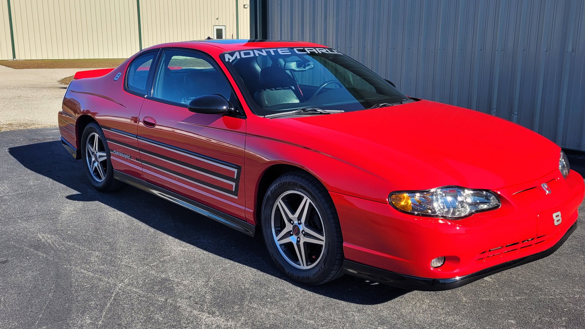 PRICE: $16,800. I am offering my 2004 Supercharged Monte Carlo SS Dale Earnhardt, Jr. Signature NASCAR Tribute Series with 37,500 miles for sale. It is a show-winning vehicle and I purchased from the original owners. With all documentation including the Certificate of Authenticity, this car is number 2,705 of 2,883 produced in 2004 only. Also included is the original window sticker (now laminated), all manuals, original sales literature, a Dale Jr. book with CD, Dale Jr. racing jacket, cover, original sales order and many other items. Also included is a 1:18 street version diecast new in box. Everything works as it should, including the electric sunroof. Clean CarFax and title. If you are a NASCAR fan, you would be the proud owner of this beautiful example. This rare gem pairs striking original Victory Red paint with beautiful black leather (optional for that year) interior. Race inspired graphics to mimic Dale Jr.'s Number 8 with a supercharged performance engine. 2004 was the only year this model was offered. While there are a few on the market, many have been driven as daily drivers with almost 200,000 miles. A few others that are offered have several hundred miles offered for thousands more. Cars that have been stored and not driven typically result in leaks and other problems from lack of use. This is a very well-cared for car that has always been garaged and never driven in salt or snow. Car has never had anything but non-ethanol gasoline all its life. If you are looking for an award-winning vehicle for the spring car show market, then this is it. Stored in climate-controlled facility. Look at that shine! Detailed engine even includes the rare "Supercharged" cover. All wheels in great condition. Beautiful optional leather upholstery. No rips or tears. Always a winning show car. All original manuals, original sales literature, a Dale Jr. book with CD, Dale Jr. racing jacket, cover and other memorabilia. A 1:18 street version diecast new in box.