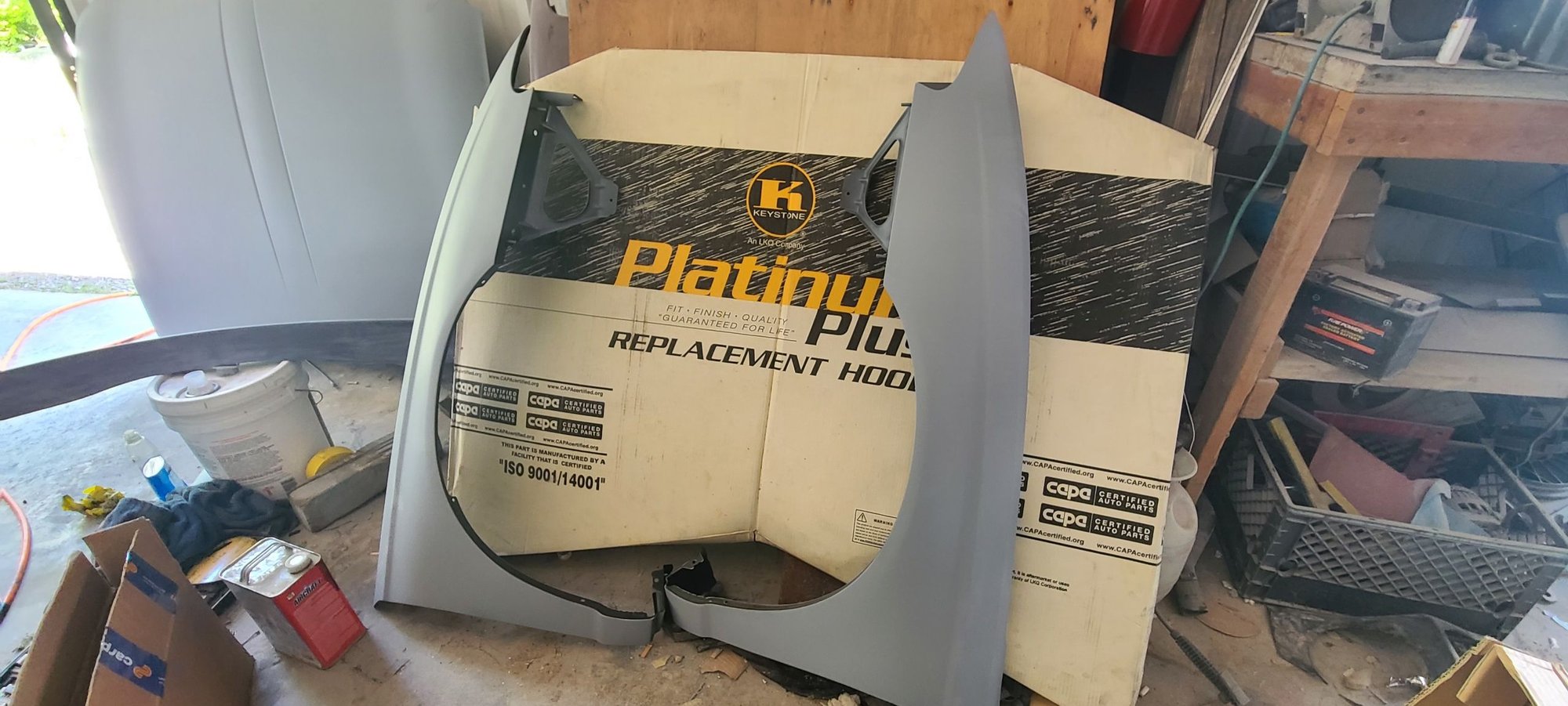 So we are moving along. First I took care of the mechanical problems. Then new wheels and tires. Then a new windshield. Spent 5 hours underneath using an air gun and aluminum oxide to try and get through some of the rust. Still a lot there. All I can do is kill it. I am not spending the money cutting it out and putting in new sheet metal. Car is now at the paint shop and the guy is doing a nice job. Bought two new front fenders from Evans-Fisher. Will let you know how well they work. New wheels and tires. Getting rid of a lot of bird**** that ruined the finish. She's coming apart.