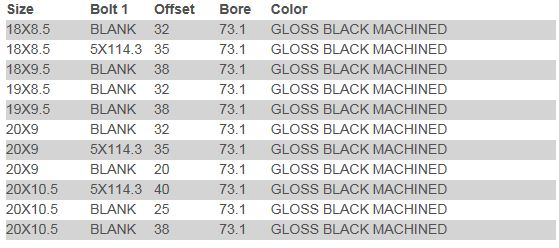 i got to researching this wheel more. here is the following info for wheels, and sizes available in that style.