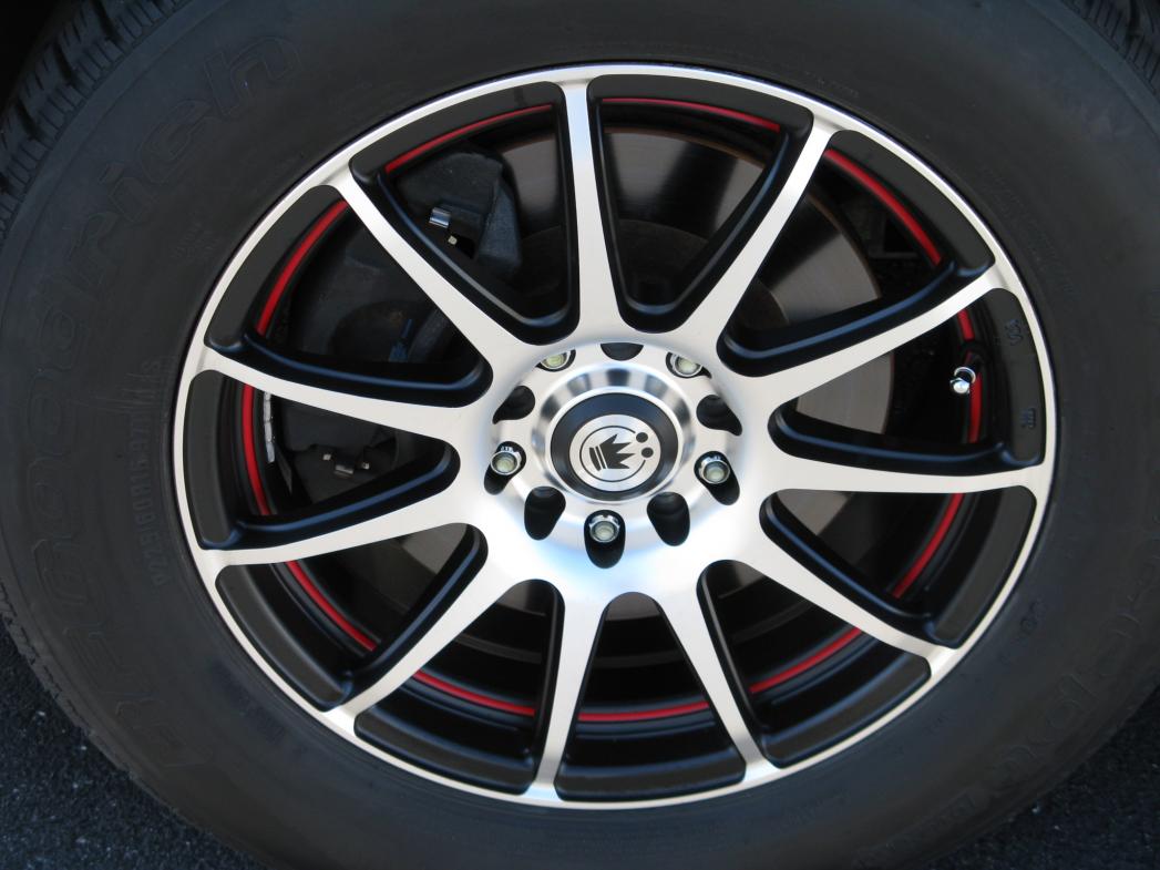 Got 'em at Discount Tire for $98 a piece. I think they look good with the blue paint and I can finally have rims that aren't clouded up and peeling for once... Also, it would've cost $130 a piece to refinish the old ones, and this problem would show up again another 5 years down the road. They also have locking lug nuts on them (just like the locking hub caps I had on my Olds 98 back in the day); so they won't get stolen. Besides, the alarm would go crazy if the car was put on jacks while it was armed.:p