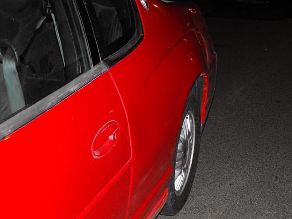 you can still see a bit of a dent... twistadent will pull it out. we couldn't get it straight because my doorpost was hit a bit... the molding will hide it.. and maybe it's a shadow from my flash... still looks better!